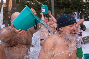 Моржи на стадионе: 200 калининградцев облились ледяной водой
