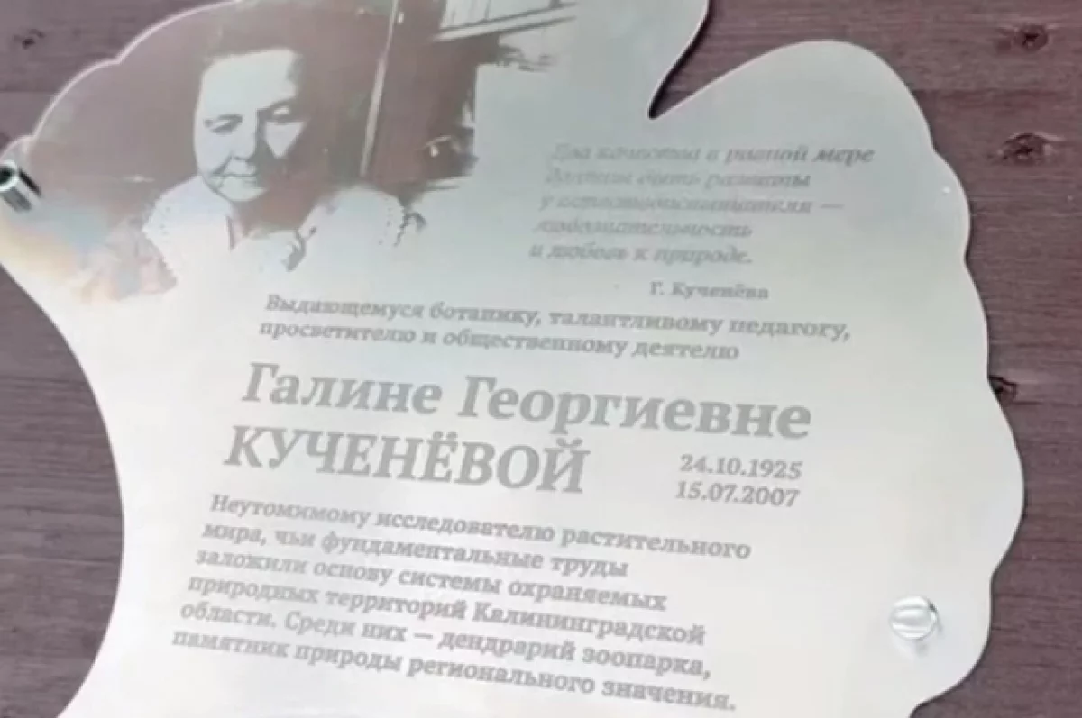 В Калининградском зоопарке появилась памятная табличка в честь выдающегося биолога, педагога и защитницы природы Галины Георгиевны Кученёвой. Об этом сообщили в пресс-службе учреждения.